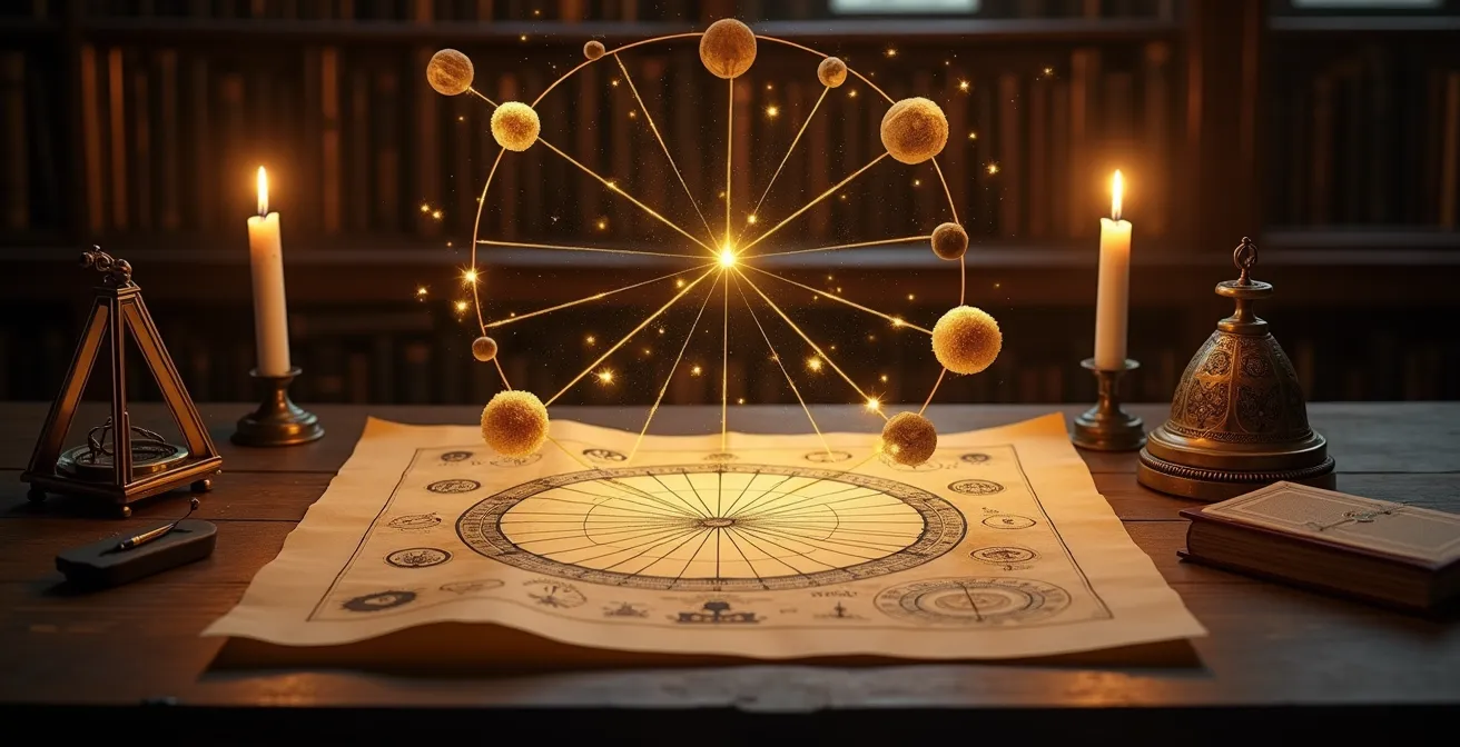 E se la chiave non fosse sommare, ma integrare? E se un tema natale non fosse una lista di spesa, ma un romanzo? Una storia unica con un protagonista (i luminari), un conflitto centrale (le quadrature e le opposizioni) e un percorso di risoluzione (la sintesi evolutiva). Questo articolo ti guiderà a cambiare prospettiva. Non ti daremo un’altra lista di significati. Ti offriremo un metodo narrativo per diventare un « narratore di vite », capace di tessere i fili sparsi del tema natale in un arazzo coerente e potente. Imparerai a identificare la gerarchia degli elementi, a interpretare le tensioni come dinamiche creative e a trasformare ogni apparente contraddizione nella più grande risorsa del soggetto.